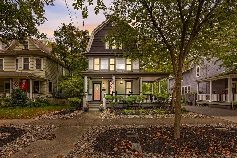 If you’ve been dreaming of a historic Haddonfield home with a wraparound front porch, timeless details, and modern updates, this property delivers. Inside, you’ll find rich wood accents, crown molding, French doors, and original heartwood pine floors. The living room offers custom built-ins and a fireplace, while the dining room features a beautiful bay window. The renovated kitchen includes a quartz island, KitchenAid gas range, farmhouse sink, exposed brick. A spacious family room with a wine bar and beverage fridge adds even more character. Upstairs, the primary suite feels like a retreat with double closets, an electric fireplace, and a spa-like en suite. Two additional bedrooms, a home office, and a stylish family bath complete the second floor, with three more bedrooms and another full bath on the third. Outdoor living is just as impressive with a turreted screened-in porch, deck, stone patio with hot tub, treehouse, and a two-car garage connected by a charming brick path.
